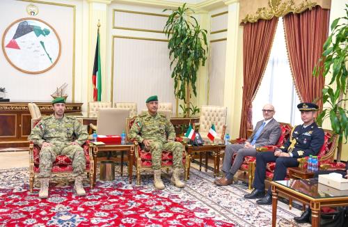استقبل سعادة وكيل الحرس الوطني الفريق الركن حمد سالم البرجس، سعادة سفير جمهورية إيطاليا الصديقة لدى الكويت لورينزو موريني والملحق العسكري بالسفارة الإيطالية العقيد ميكيللي ريغا. ورحب سعادة وكيل الحرس الوطني بسعادة السفير، ونقل له تحيات قيادة الحرس الوطني ممثلة في معالي الشيخ مبارك حمود الجابر الصباح رئيس الحرس الوطني، ومعالي الشيخ فيصل نواف الأحمد الصباح نائب رئيس الحرس الوطني، وتم خلال اللقاء بحث الموضوعات ذات الاهتمام المشترك.